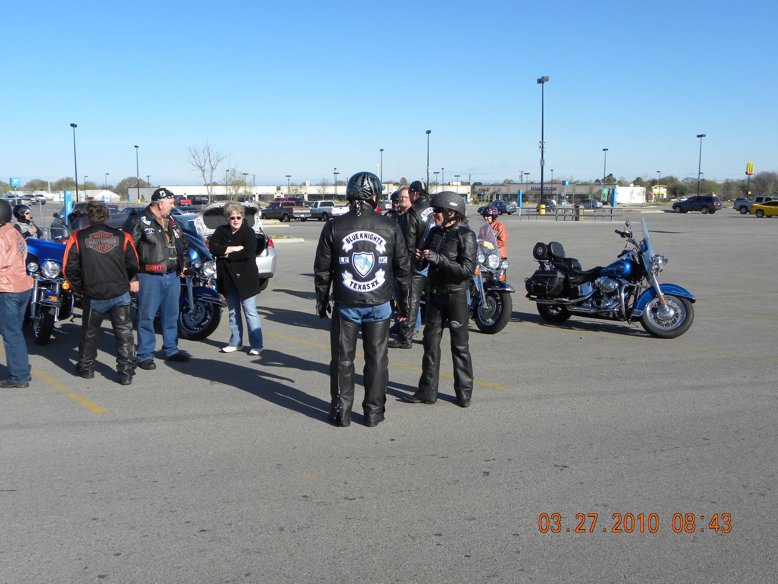 Today, Saturday, 3-27-10, there was a ride down to Decatur Texas to Sweetie Pie's Ribeye's Restaurant. The Blue Knights TX XX was in attendance as well as members from H.O.G. and a bunch of our friends. Janice even took me and we followed the 20 bikes and 30 folks to Decatur Texas in the car. Those actually in attendance today were: Russ (Road Captain), Curtis, Kyle, Amy, Tim & Tammy, Larry, Laura, Charlie & Brenda, Steve & Vanessa, Tyler, Steve & Connie, Gary & Jean Ann, Joe & Sherri, Nubbin & Angela, Sissy, Myra & Russell, Dennis & Moe, Jimmy, Janis & Robert and Janice & me. So scroll on down and join us for today's ride and REMEMBER: IF YOU WANT TO SEE THE PICTURE BIGGER, JUST CLICK ON THE PICTURE...